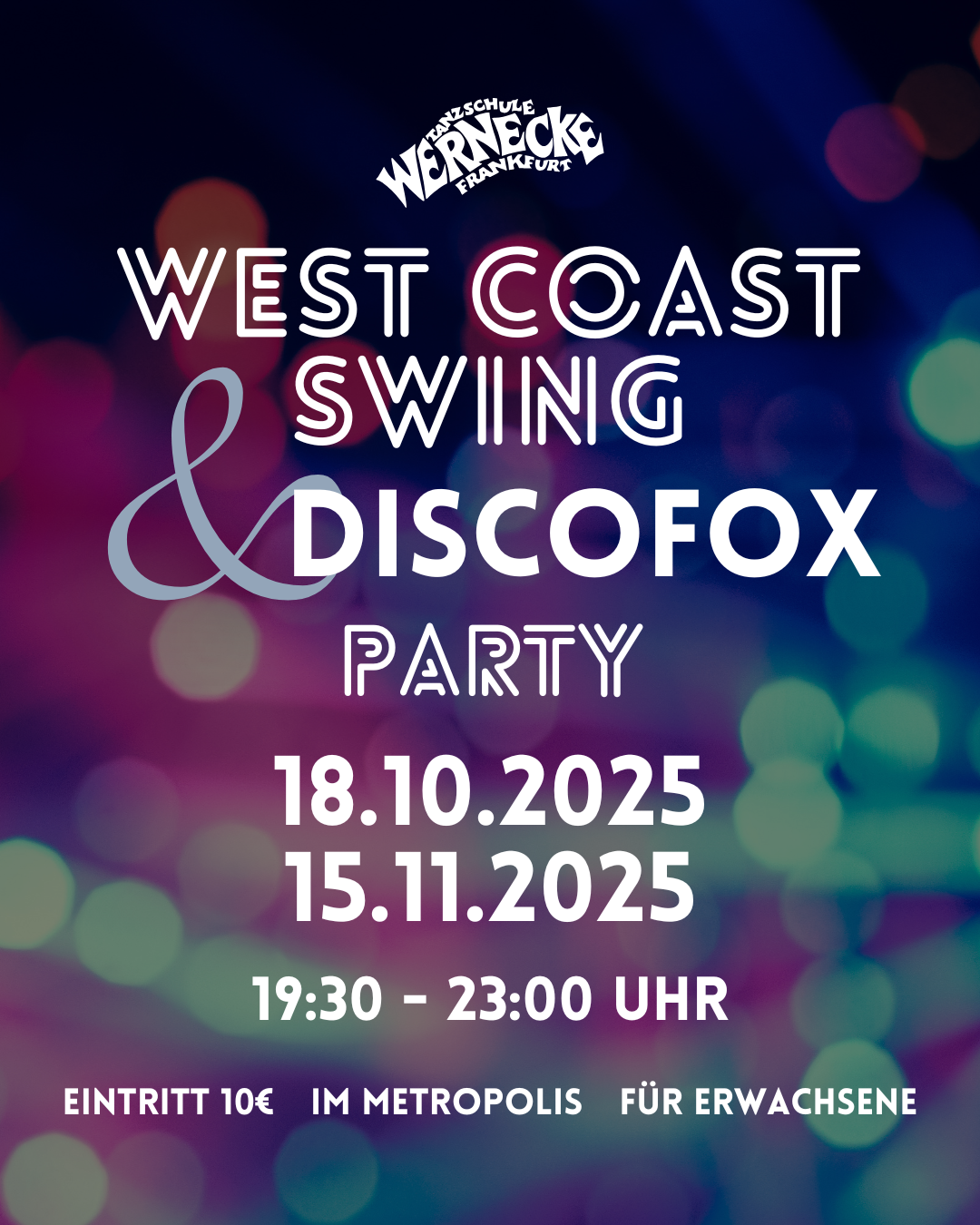 West Coast Swing und Discofox ergänzen sich harmonisch - beide Tänze stehen für fließende Bewegungen, musikalische Freiheit und Spaß auf der Tanzfläche – egal ob zu modernen Popsongs oder groovigen Klassikern.